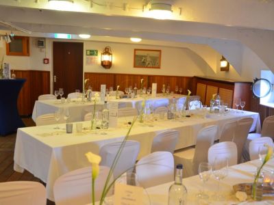 Ein Empfang an Deck dieses Seglers, der noch im 20. Jht. als Frachtsschiff über die Weltmeere gefahren ist, belohnt mit einem herrlichen Blick über die Travemündung und die wie an einer Perlenkette aufgereihten Häuser der Travemünder Altstadt inklusive dem ältesten Leuchtturm Deutschlands. An Bord kann man in drei verschiedenen Räumen von 10-120 Personen privat oder geschäftlich feiern, maritimen Flair inklusive.